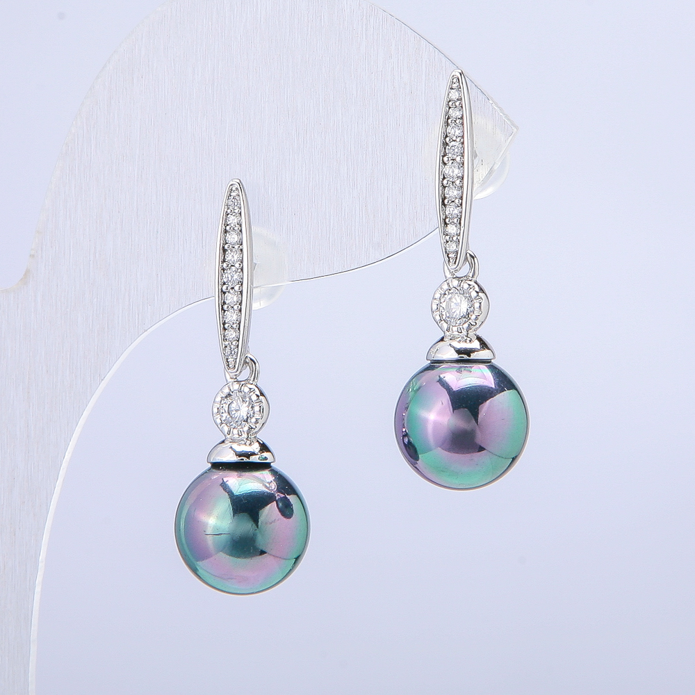 Сережки Xuping Сережки пусети кульчики Позолота 18К з чорної бензин намистиною та білими стразами, діаметр 10мм + -, довжина 31мм +